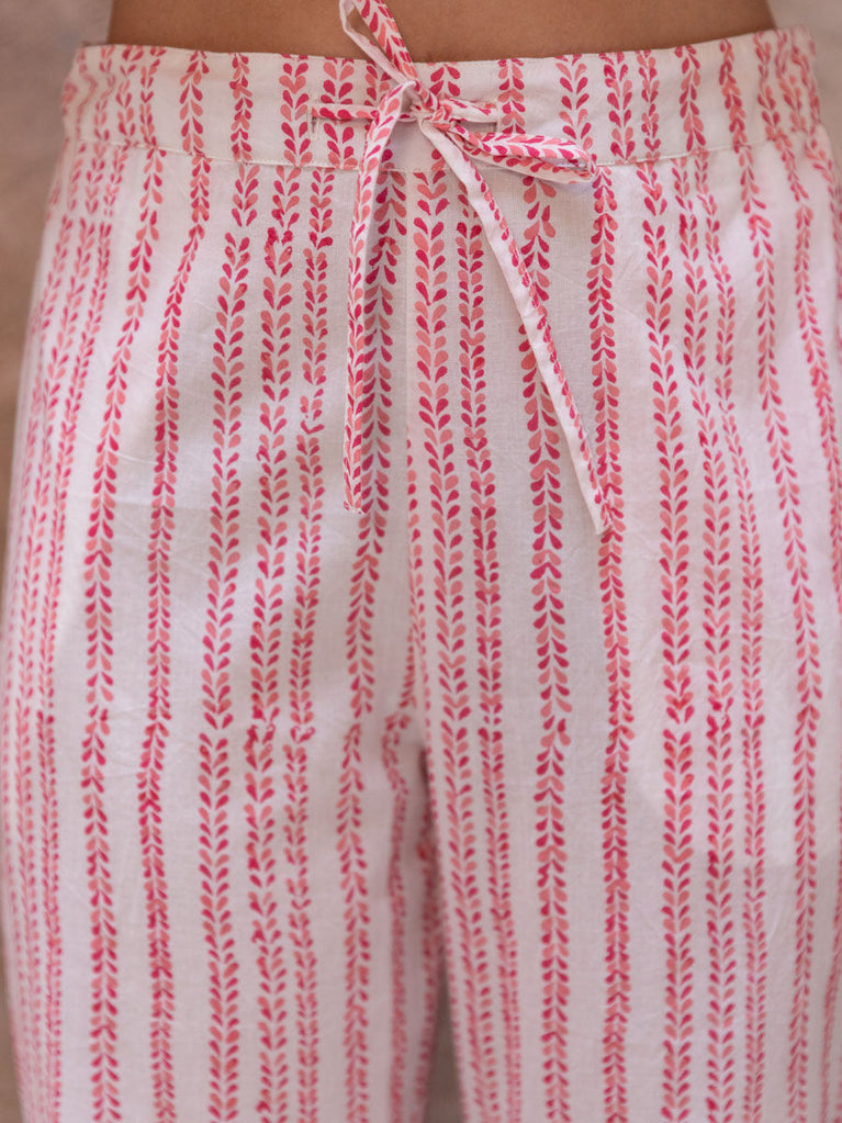 Pink Lotus Cotton Hand Block Printed Lantern Pants