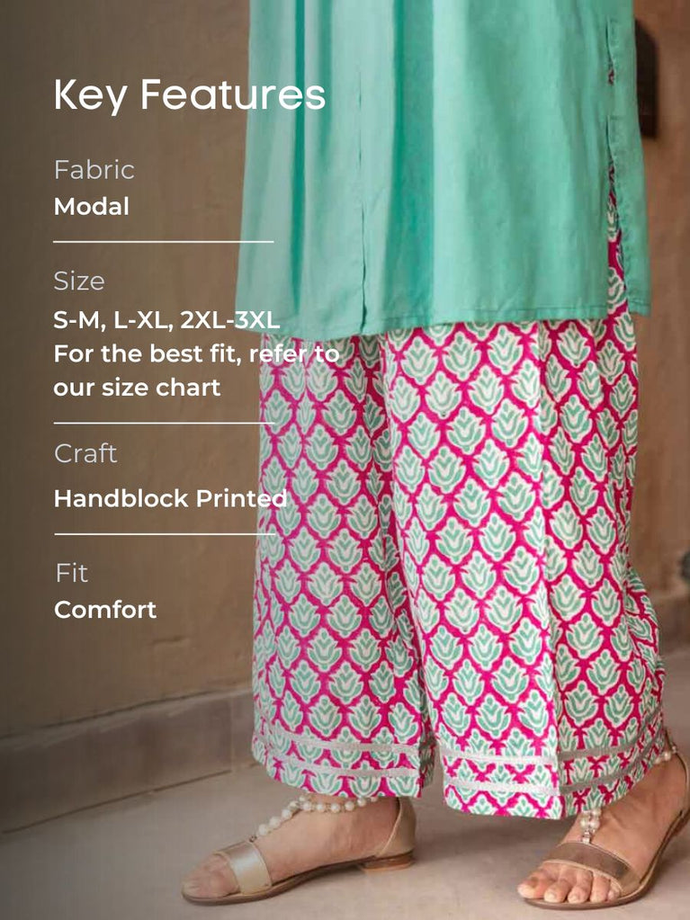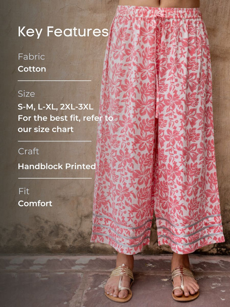 Pink Floral Paradise Hand Block Printed Palazzo Pants