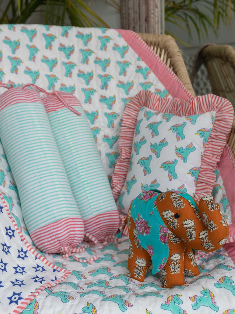 Set of 2 - Turquoise Stripes Organic Cotton Infant Bolster