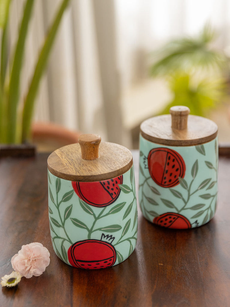 Set of 3 - Amarabati Wooden Jars and Platter