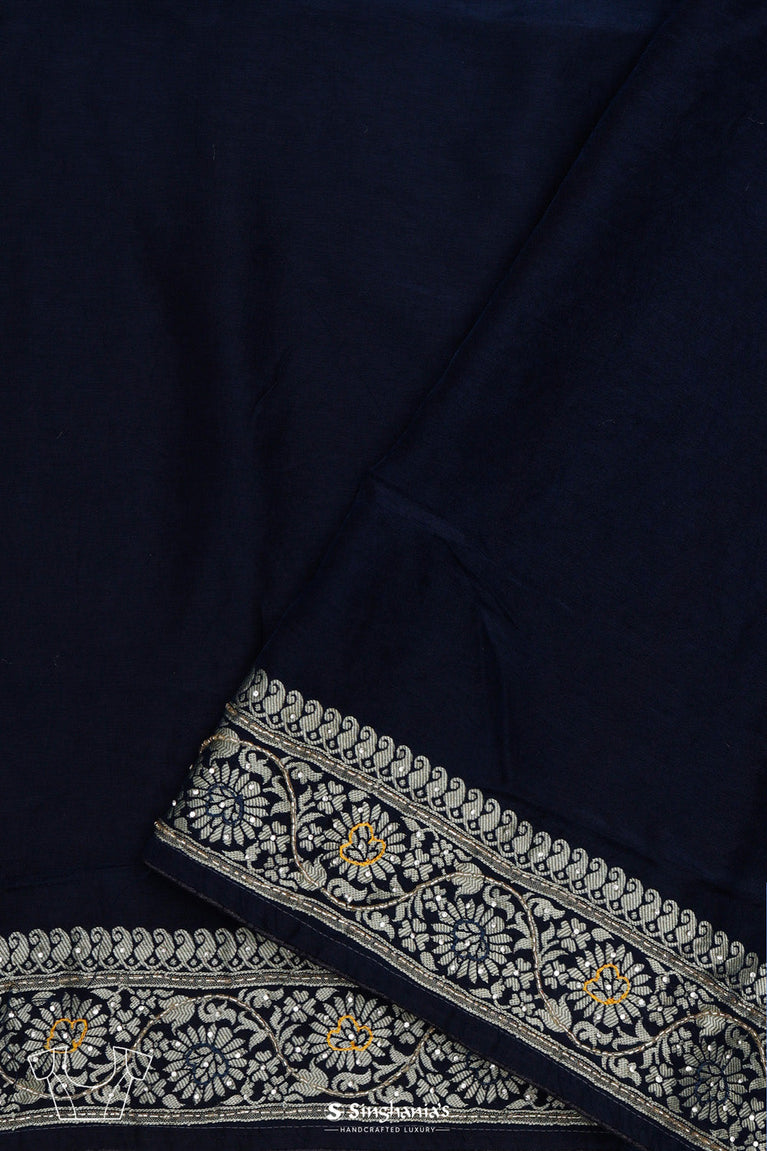 A lightweight, figure-flattering saree that’s made of pure cotton is just what your wardrobe ordered. The red-tinged floral accents on a background of the deepest navy blue make this saree truly memorable.