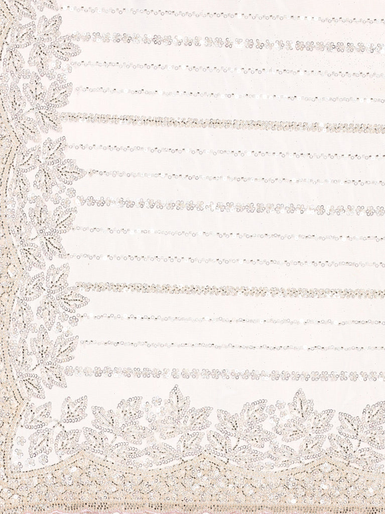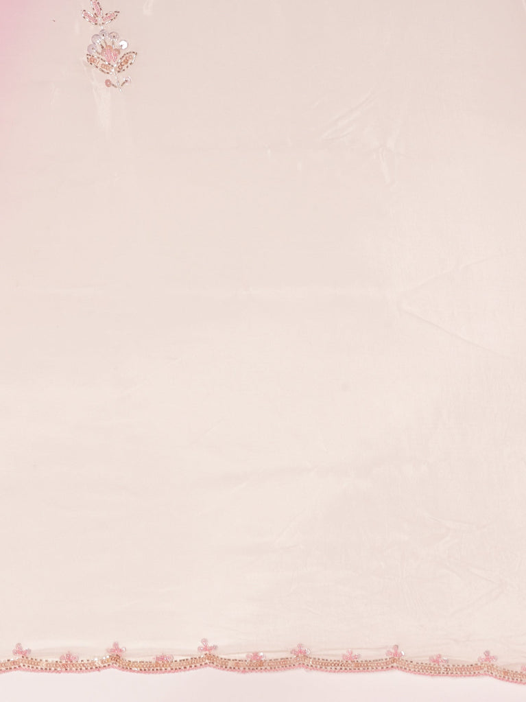 This baby pink net saree is expertly crafted with delicate cut Dana hand embroidery, showcasing refined artistry and timeless elegance. The soft net fabric ensures a graceful and comfortable drape, making it an ideal choice for formal events and celebrations. The intricate embroidery enhances the saree’s texture and visual appeal, reflecting skilled craftsmanship suited for connoisseurs of fine ethnic wear.