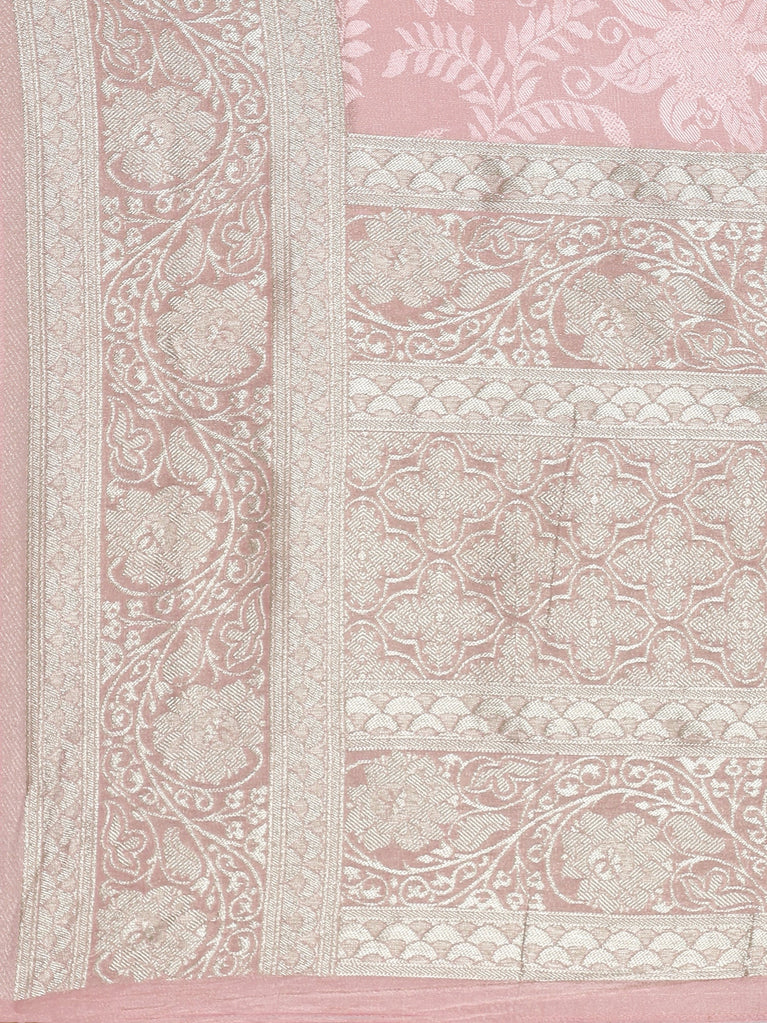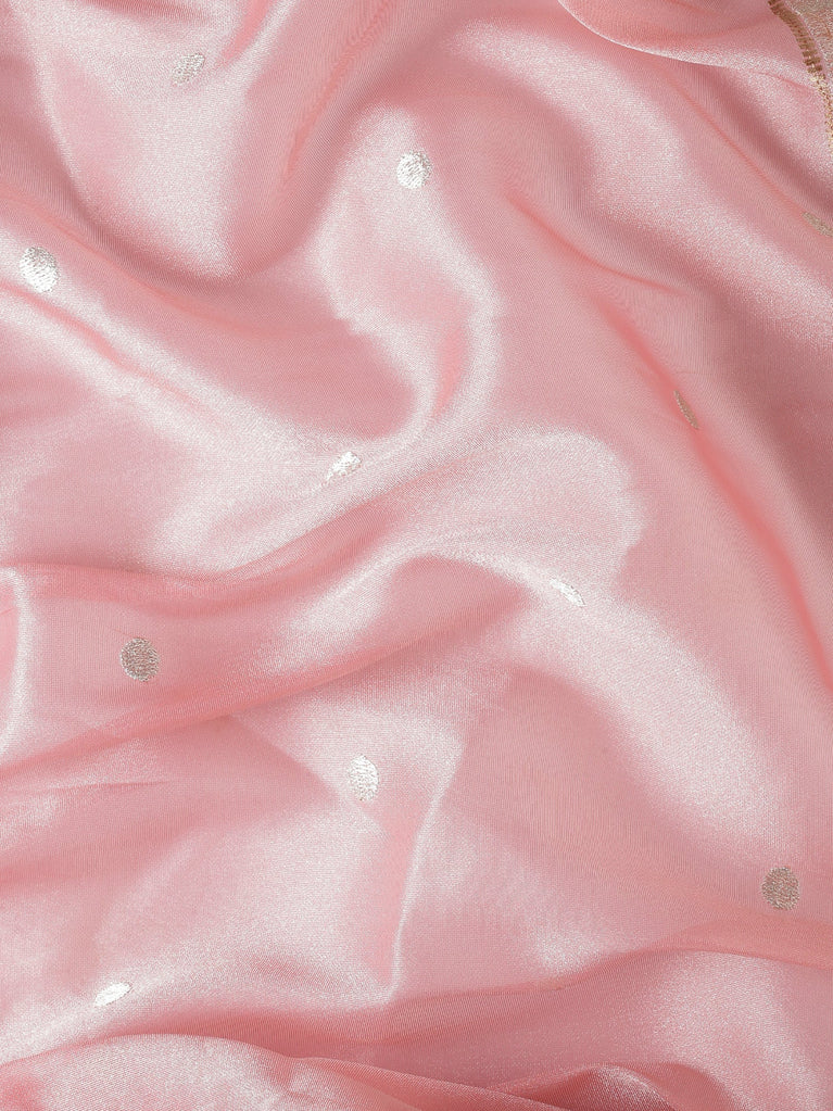 Baby Pink Banaras Silk Saree With Meena Border And Motifs