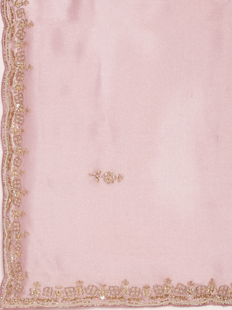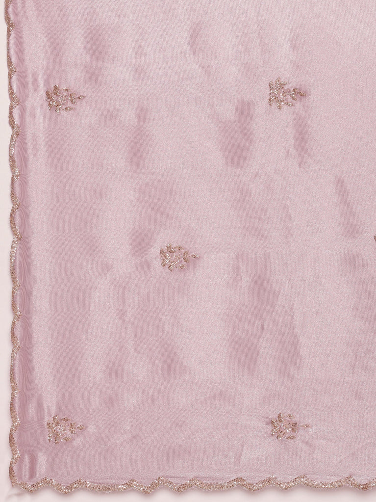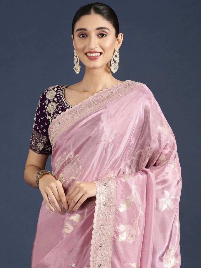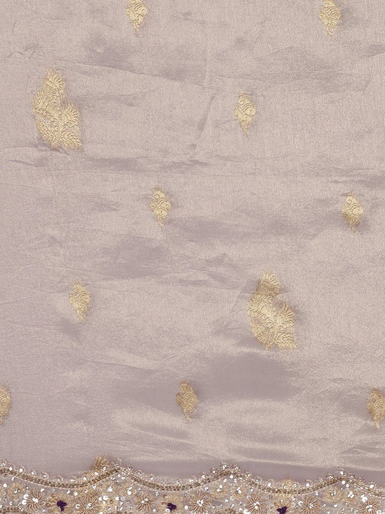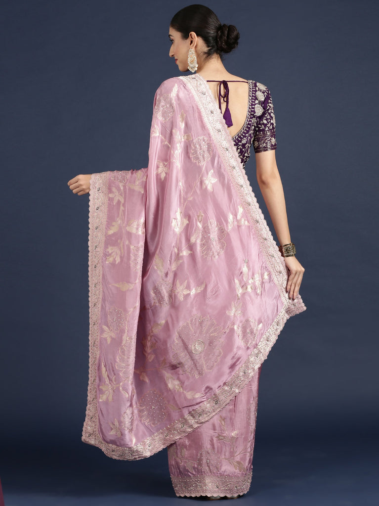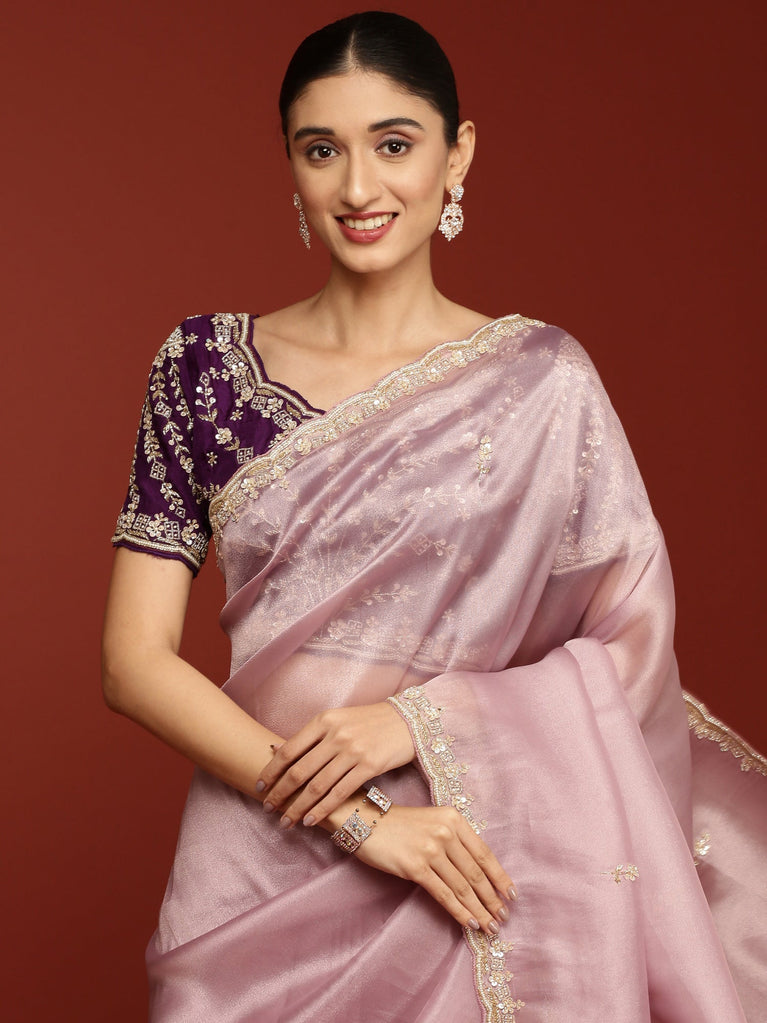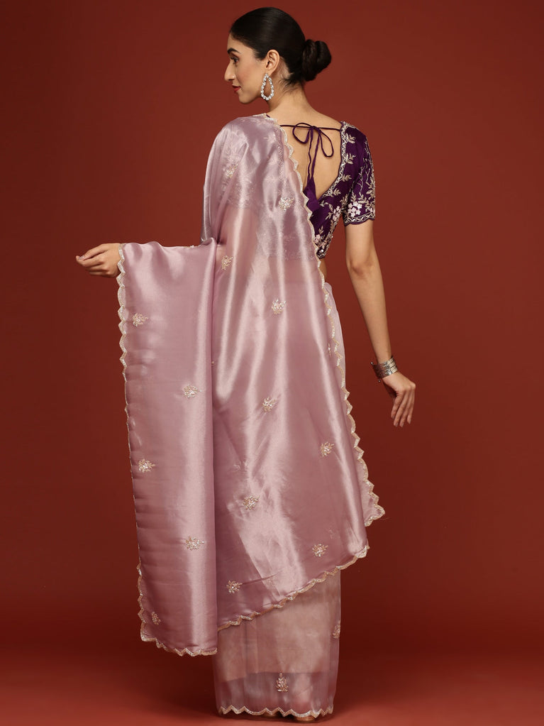 Lilac Jimmy satin tissue saree with pearls & sequin embroidery with ready made blouse