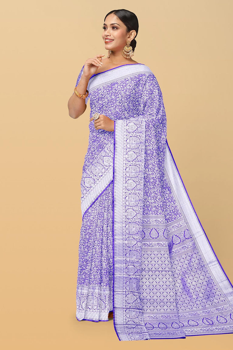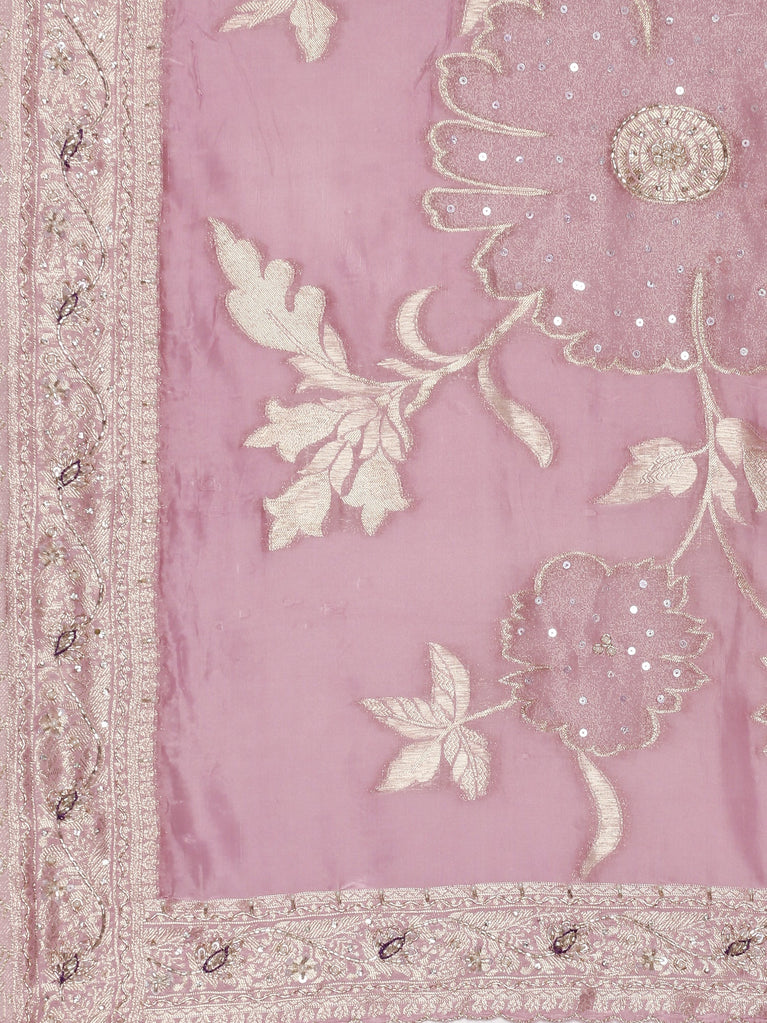 Lilac Tissue Saree With Heavy Zari And Sequins Work