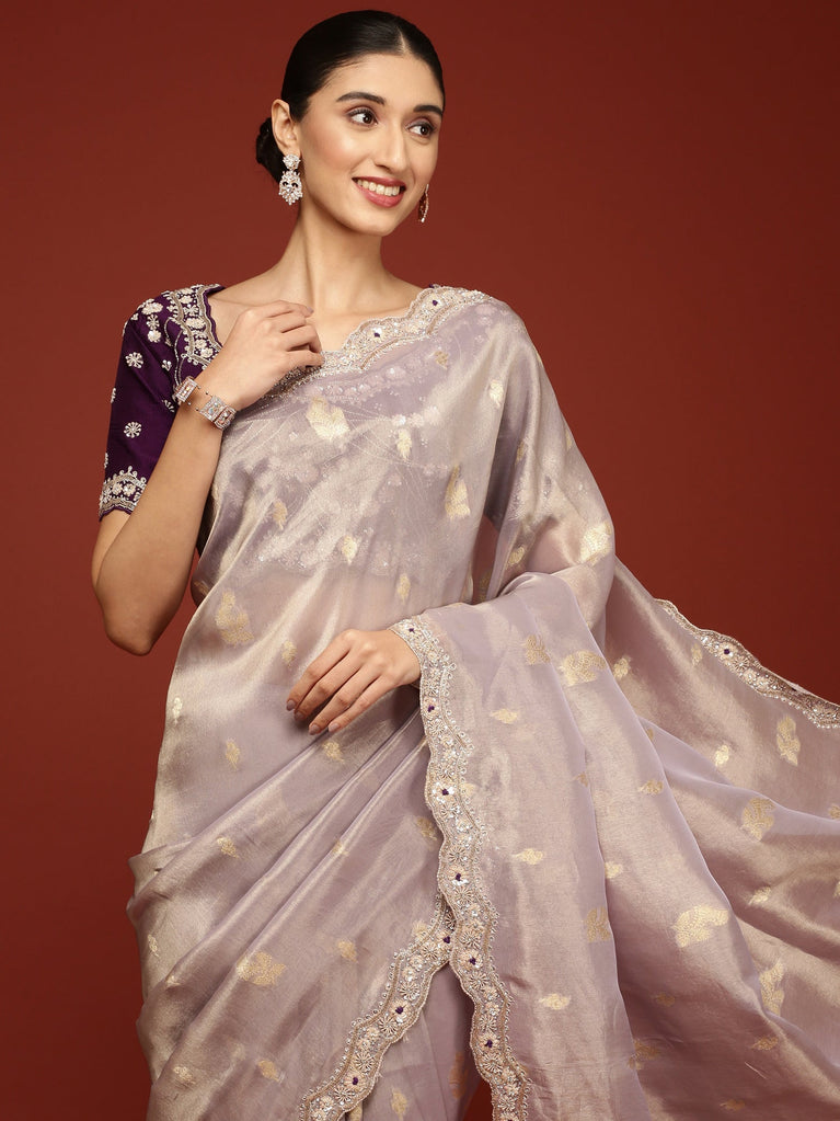 Lilac Tissue Weaved Saree With Stone Work Readymade Blouse