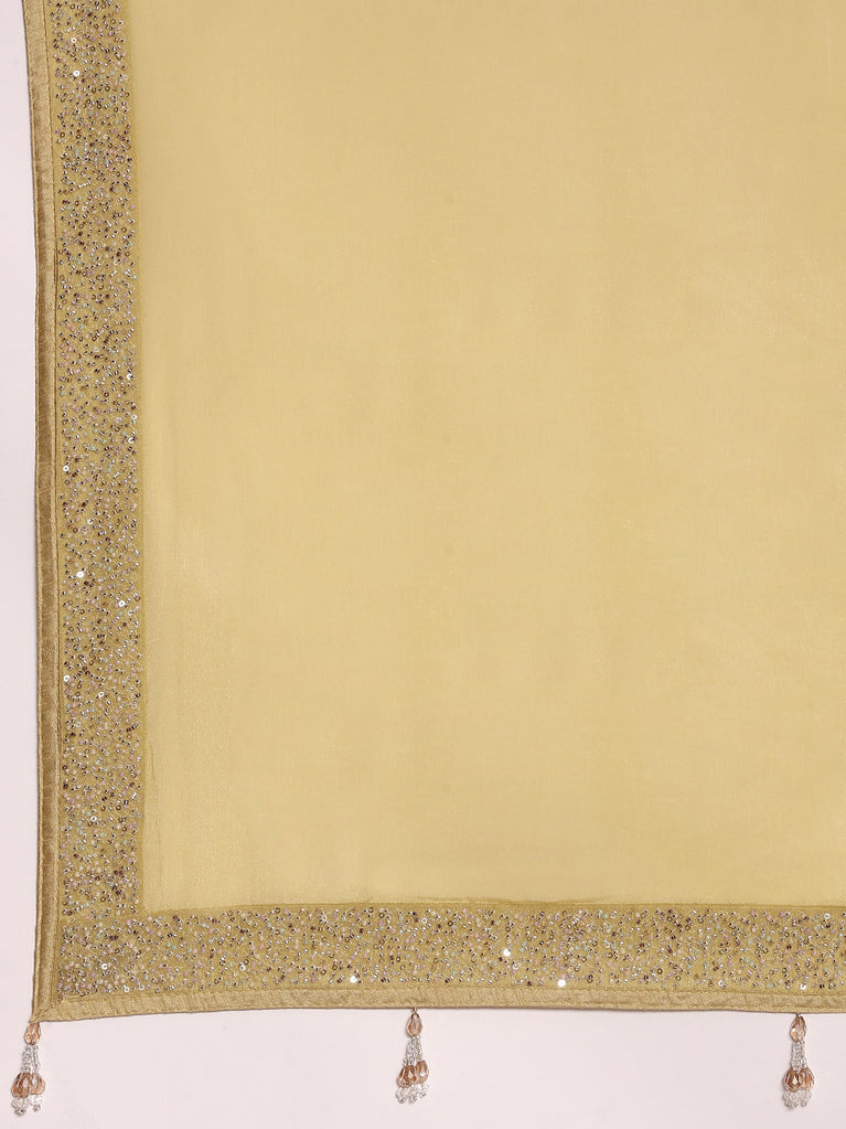 This lime yellow net saree features exquisite cut Dana hand embroidery, adding subtle texture and elegance to its delicate fabric. The lightweight net material ensures graceful draping, while the intricate handwork showcases skilled craftsmanship, making it ideal for formal occasions and festive wear. Its vibrant hue combined with detailed embroidery creates a sophisticated yet vibrant look that enhances your ensemble effortlessly.