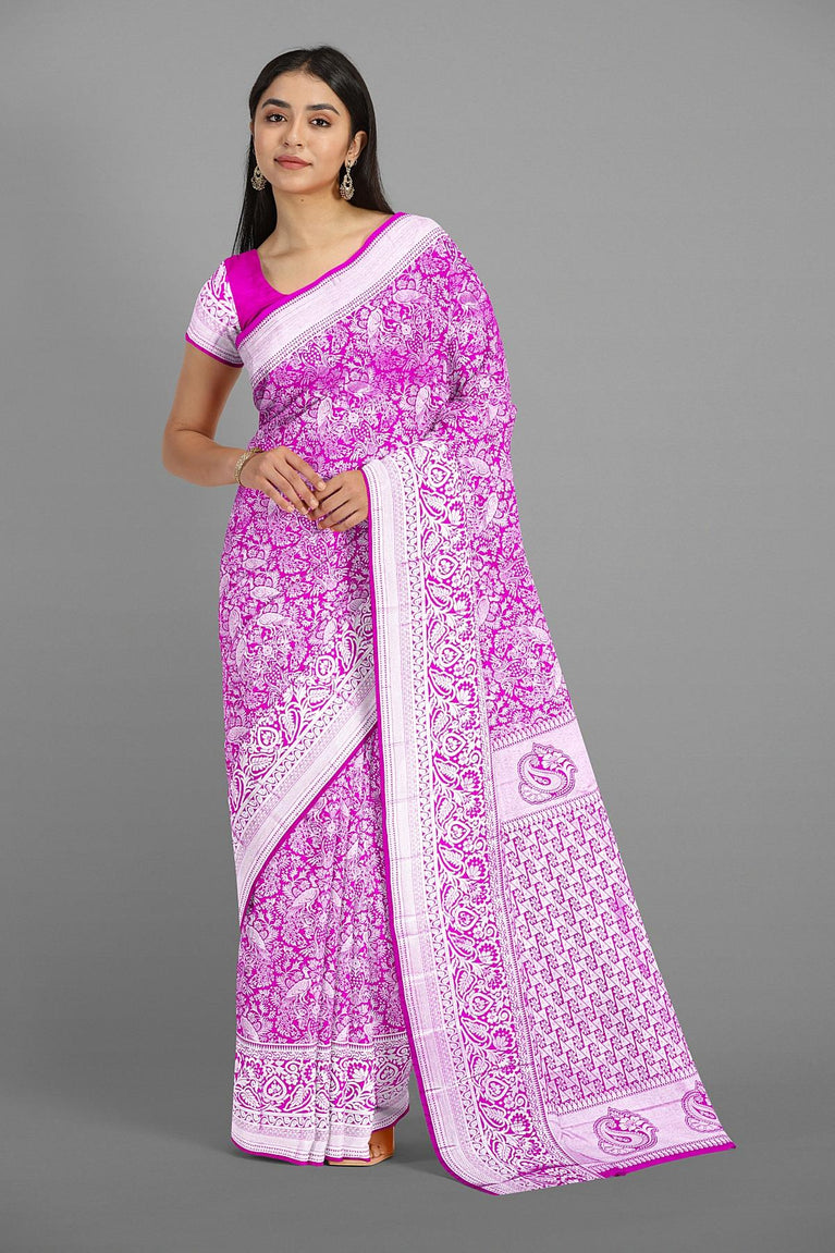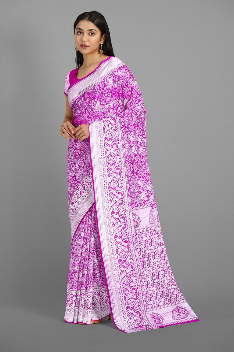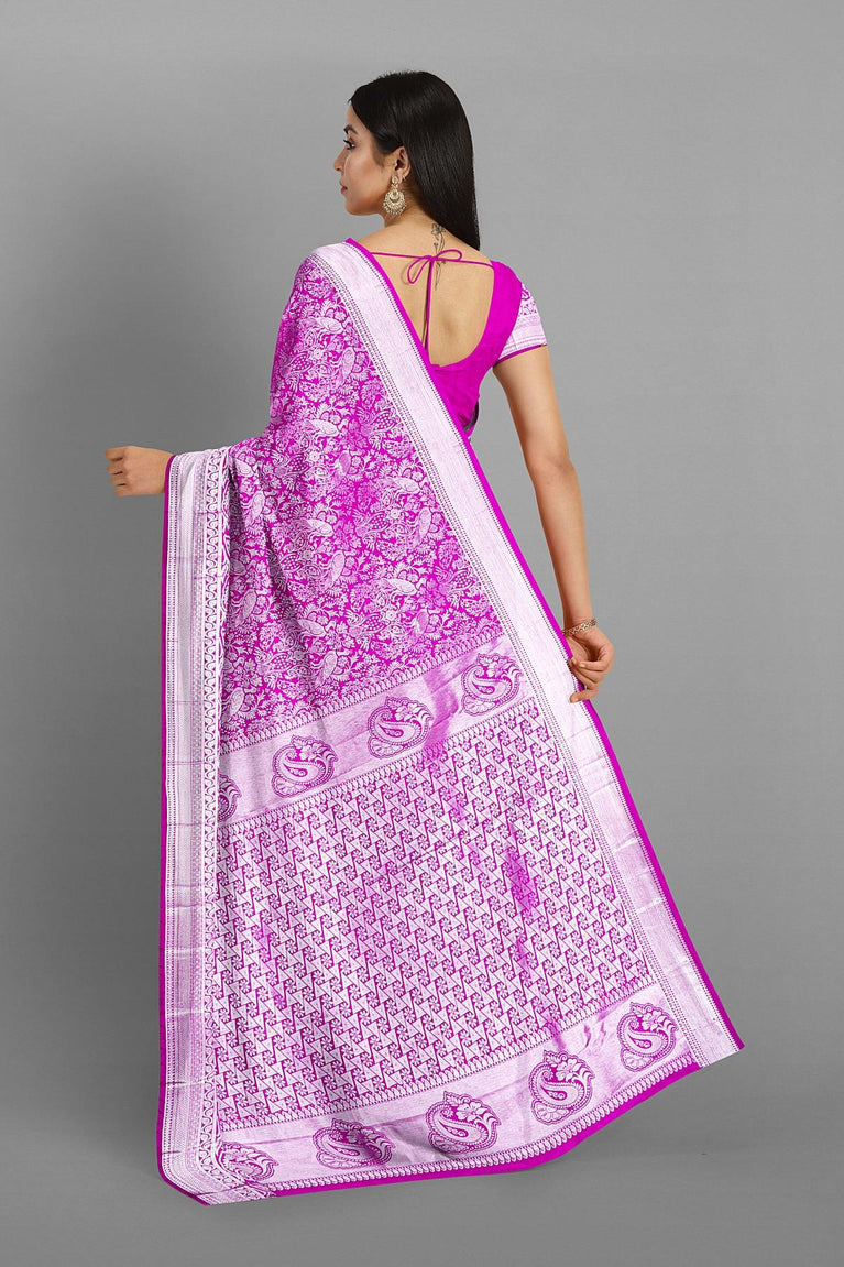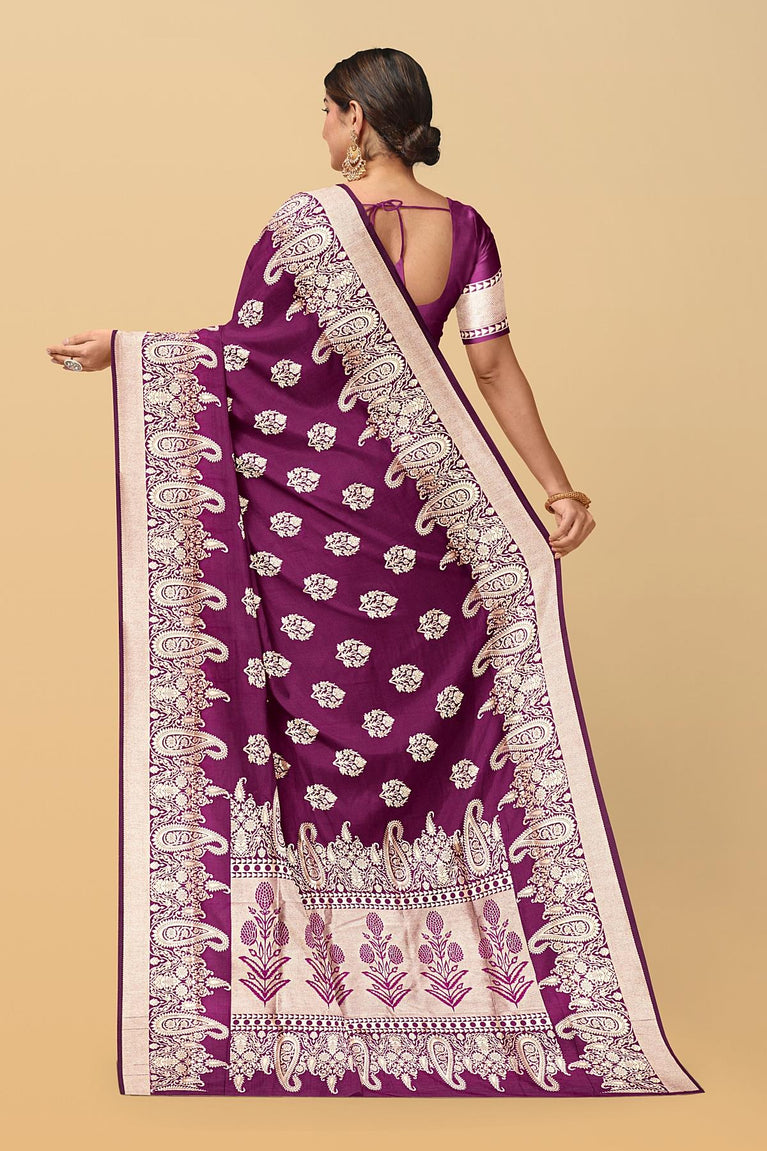 MAGENTA and SILVER FLORAL JAAL SILK BLEND Saree with SEMI PATTU