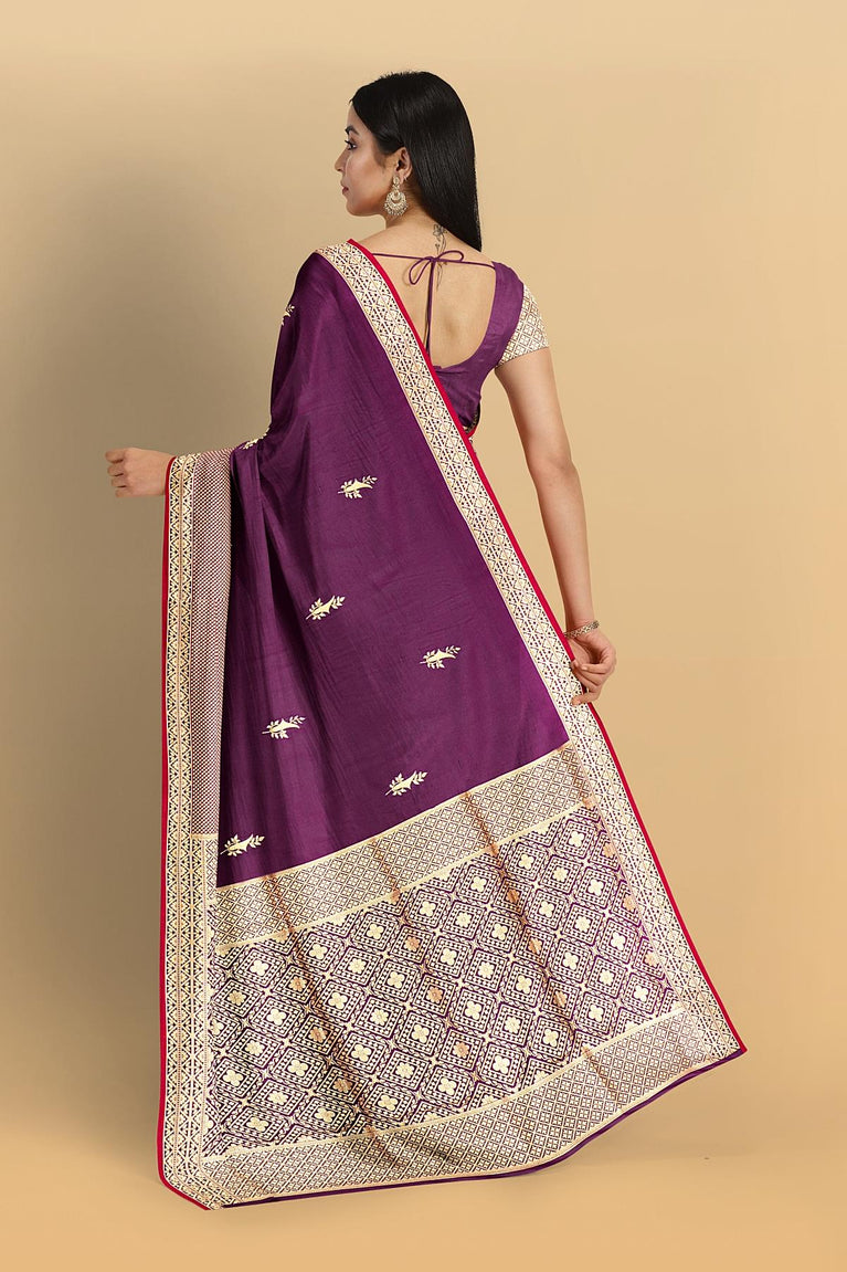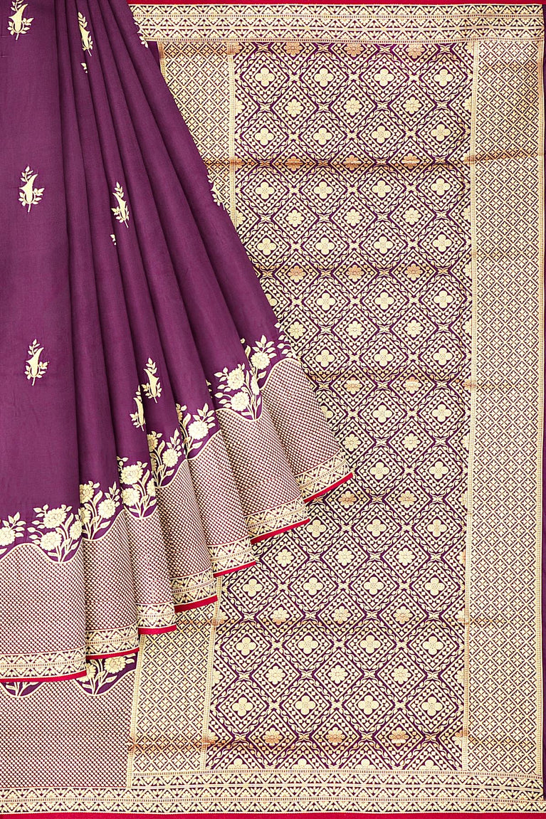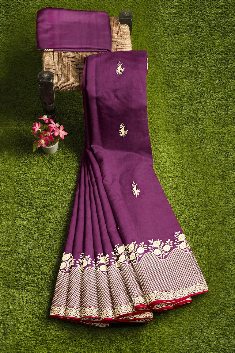 MAGENTA and GOLD BUTTIS SILK BLEND Saree with SEMI PATTU