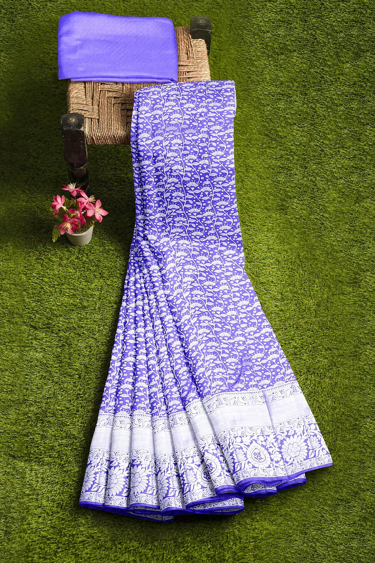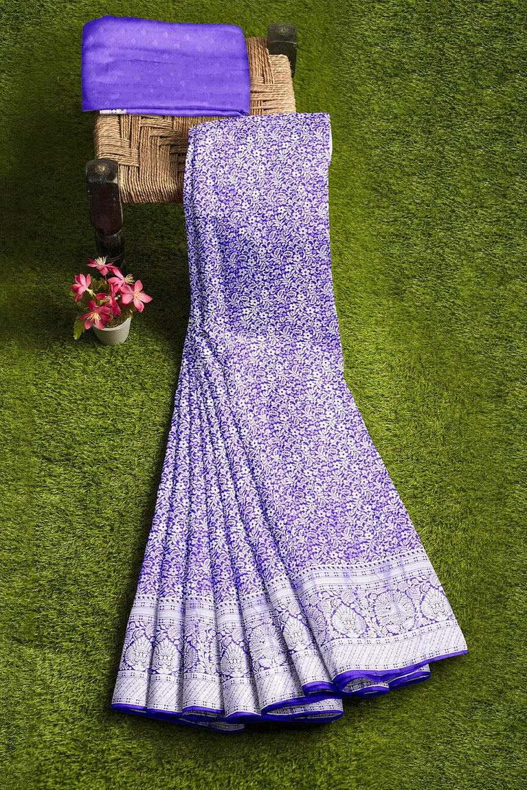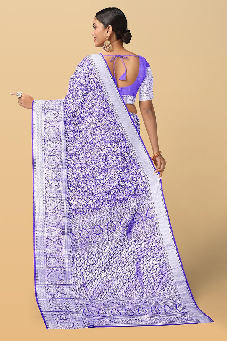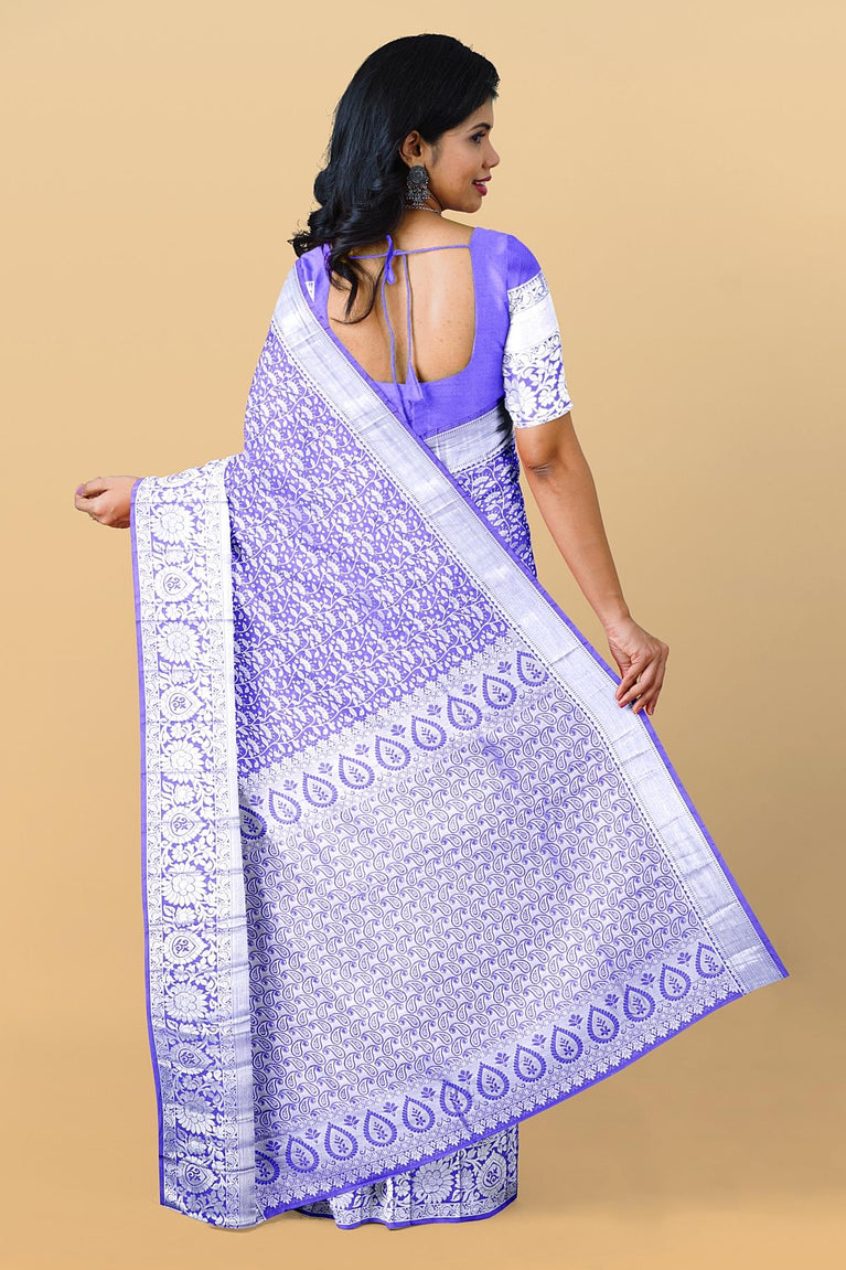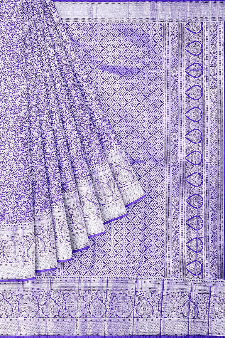 LIGHT PURPLE and SILVER FLORAL JAAL SILK BLEND Saree with SEMI PATTU