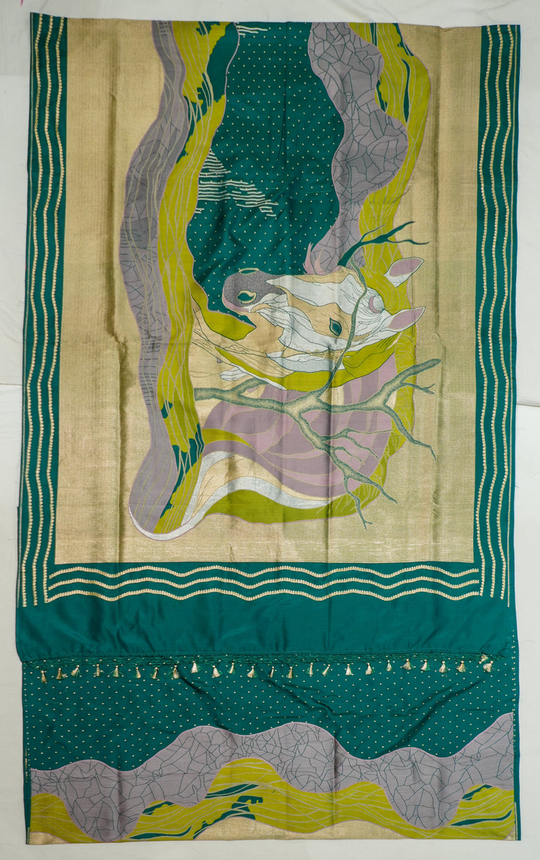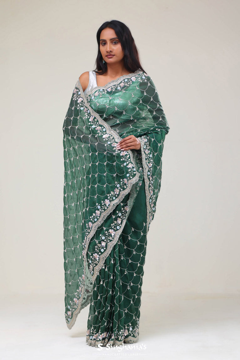 Bottle Green Handcrafted Organza Saree