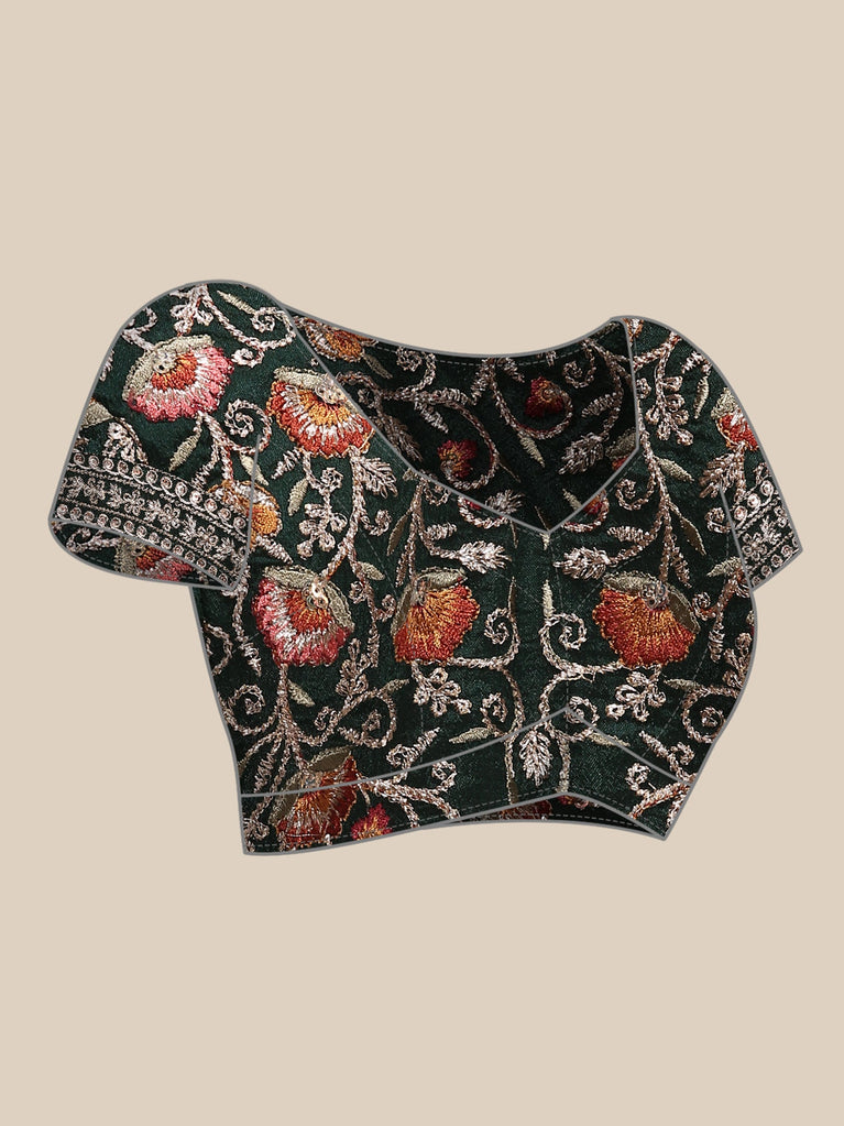Bottle Green Crepe Embroidery Saree With Readymade Blouse