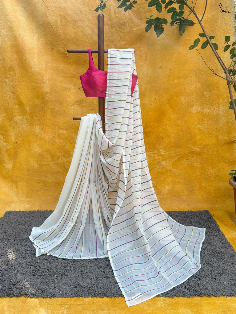The mul cotton is what we call ˜made in heaven at Suta. Known in West Bengal as mul mul, the fabric is buttery soft and delicately beautiful. The weave of this fabric is very fine, and this lends a very fluid texture to it that makes draping it a breeze. It is truly like a hug that wraps you in its love!