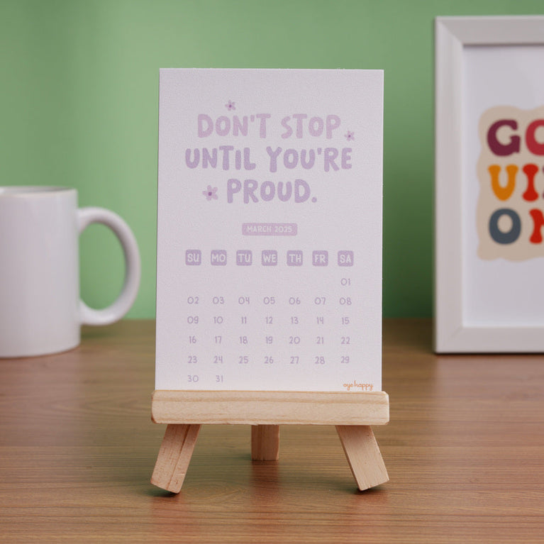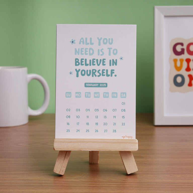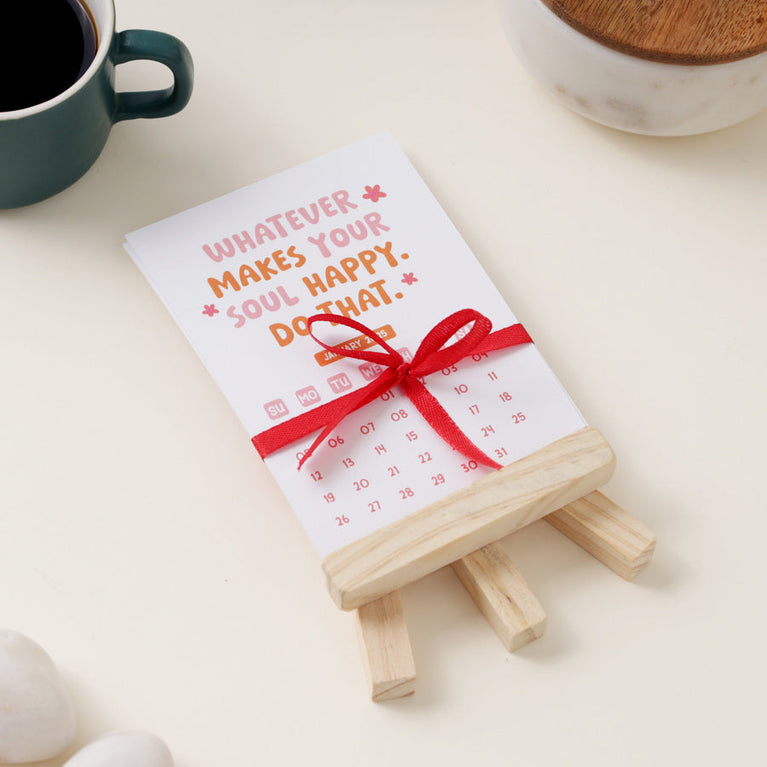 A happy little calendar that keeps your mood in the right place, no matter how the day goes. Every month it gives you a reminder to choose yourself, choose joy, and choose better days.Perfect for anyone who wants their desk to feel lighter and more positive. And a lovely new-year gift for someone who could use a bit more balance.Specifications-Size of the Easel : 4.5 x 3.5 inchesSize of Cards : Size : 3.4 x 5 inches