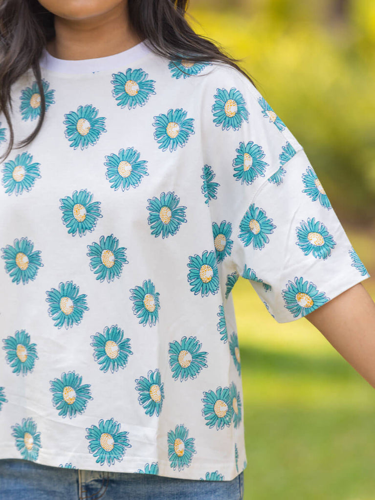 This Graphic pattern T-Shirt has a Crew Neck and Short Sleeve. Made from Cotton, it is soft and comfortable to wear.