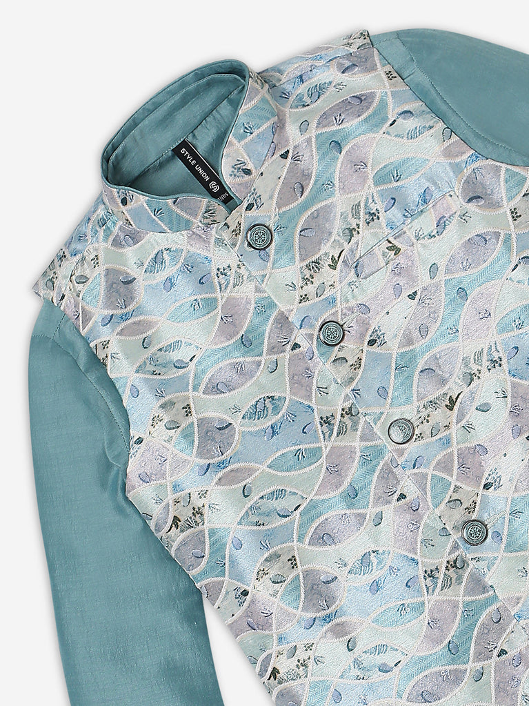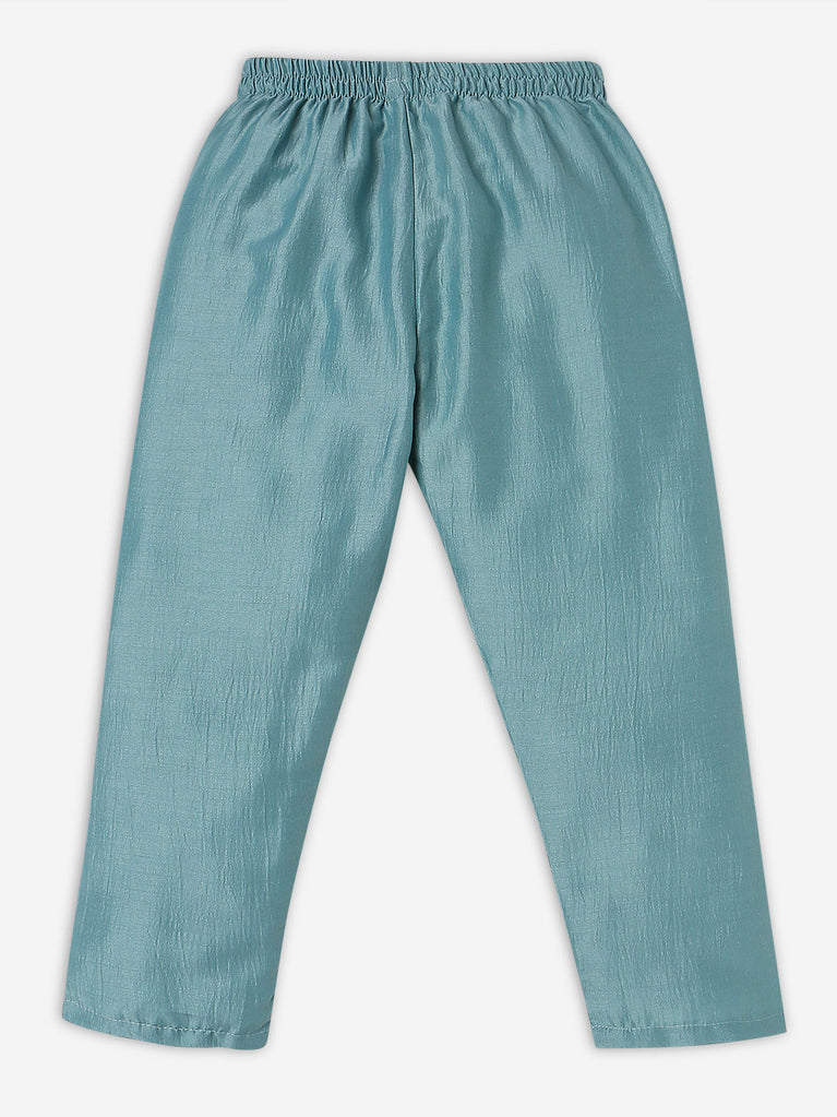 These printed pattern kurta with pant set has mandarin collar and full sleeve. Made from polyester, your kid's feel comfortable wearing the product.