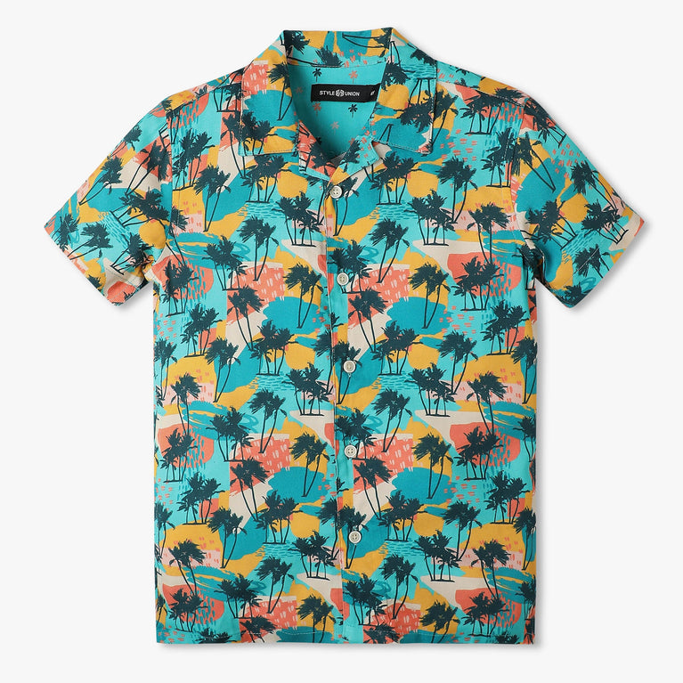 Boys Relaxed Fit Printed Half Sleeve Retreat Shirt