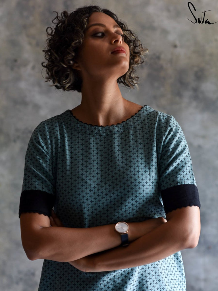 Blouse: Su, the model is wearing size S of the blouse called Sorvoi
