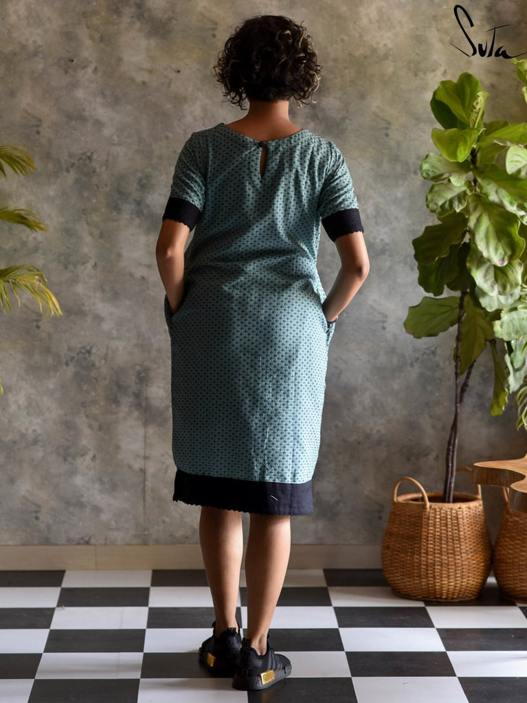 This saree in blue green shades is like a whole world of beauty unto itself!