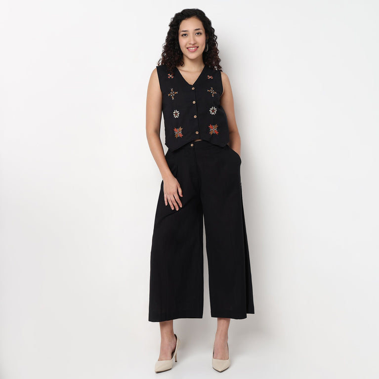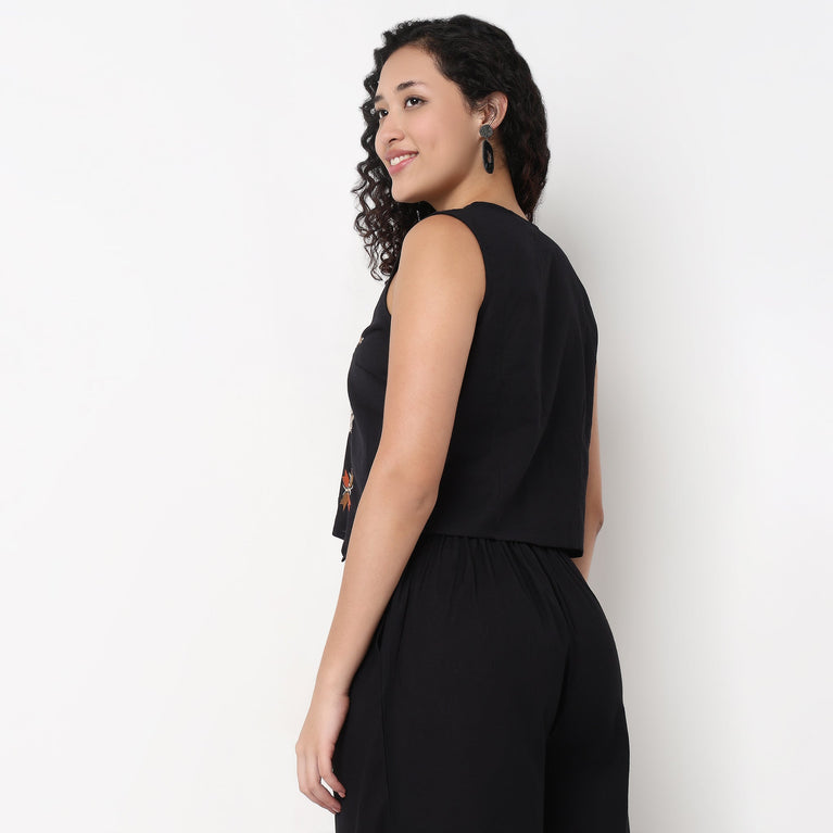 Bring a touch of attitude to your everyday wardrobe with this black top from Gia. Crafted from a soft cotton blend, it features a structured shape balanced by cut-out detailing along the neckline for a subtle edge. Full sleeves offer comfortable coverage, making it a piece you’ll reach for when you want confidence with zero effort.