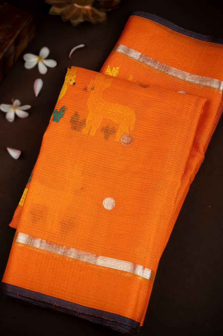 Varamahalakshmi Orange & Silver Zari Kota Buttis Saree