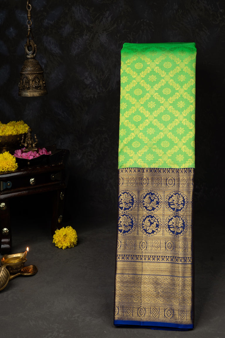 Varamahalakshmi Parrot Green & Navy Blue Kanchipuram Checks And Buttis Saree