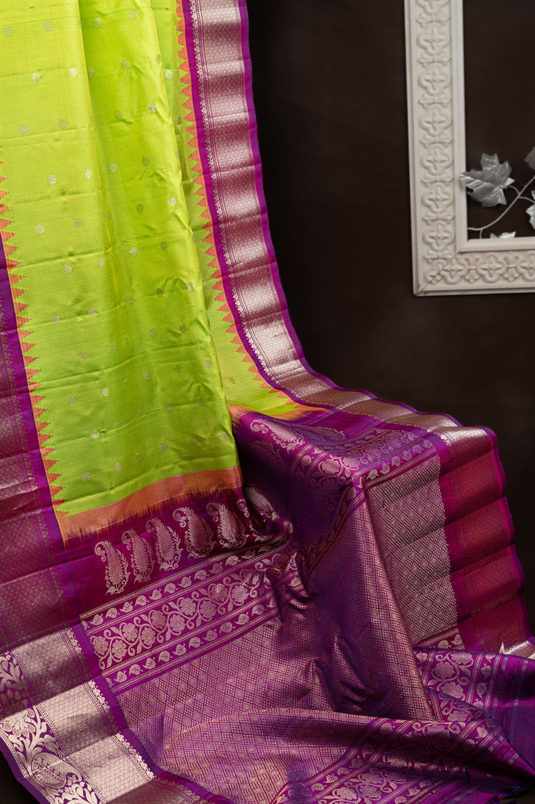 Varamahalakshmi Parrot Green & Purple Gadwal Buttis Saree