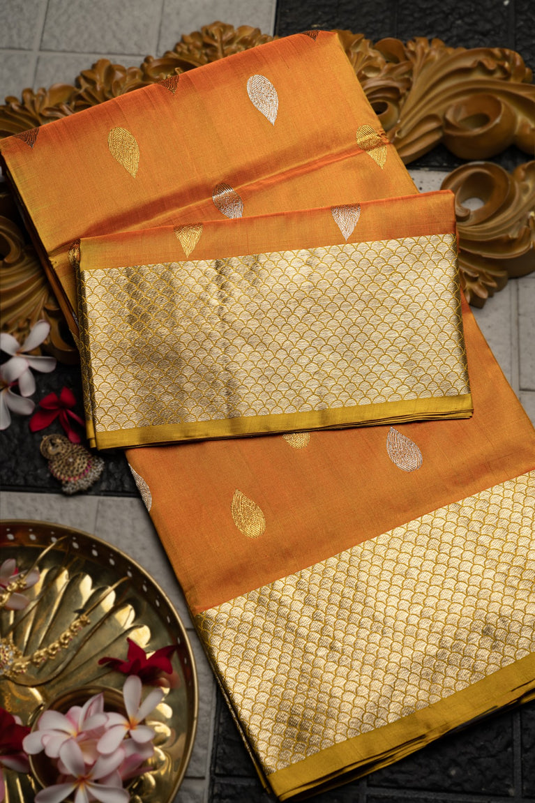 Varamahalakshmi Orange & Mustard Venkatagiri Buttis Saree