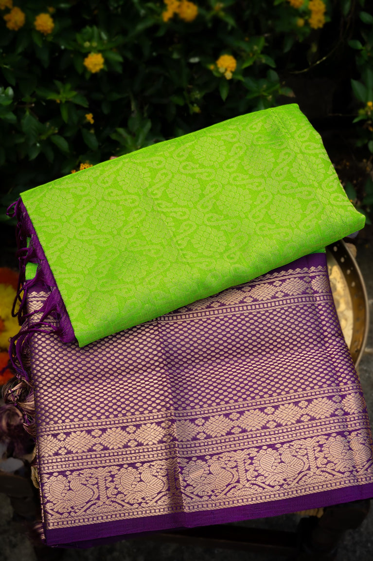 Varamahalakshmi Parrot Green & Purple Kuppadam Jaal Saree
