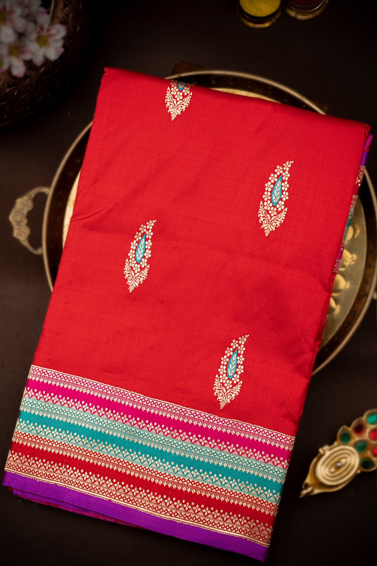 Varamahalakshmi Red & Multi-Colour Banarasi Buttis Saree