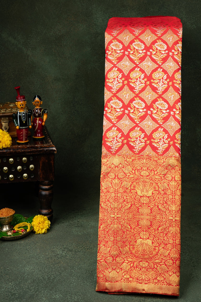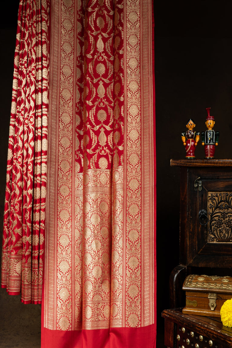 Varamahalakshmi Red & Red Banarasi Floral Jaal Saree