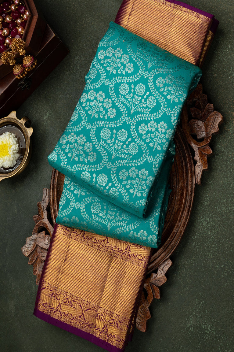 Varamahalakshmi Sea Blue & Maroon Kancheepuram Buttis Saree
