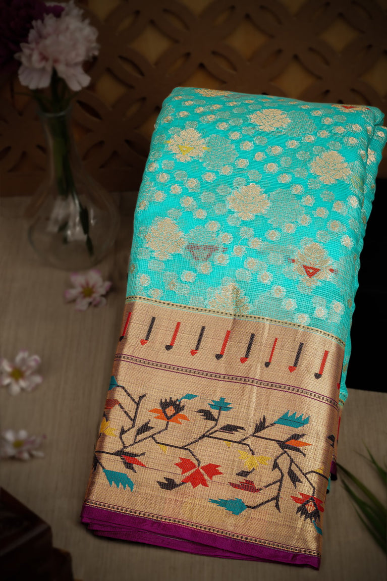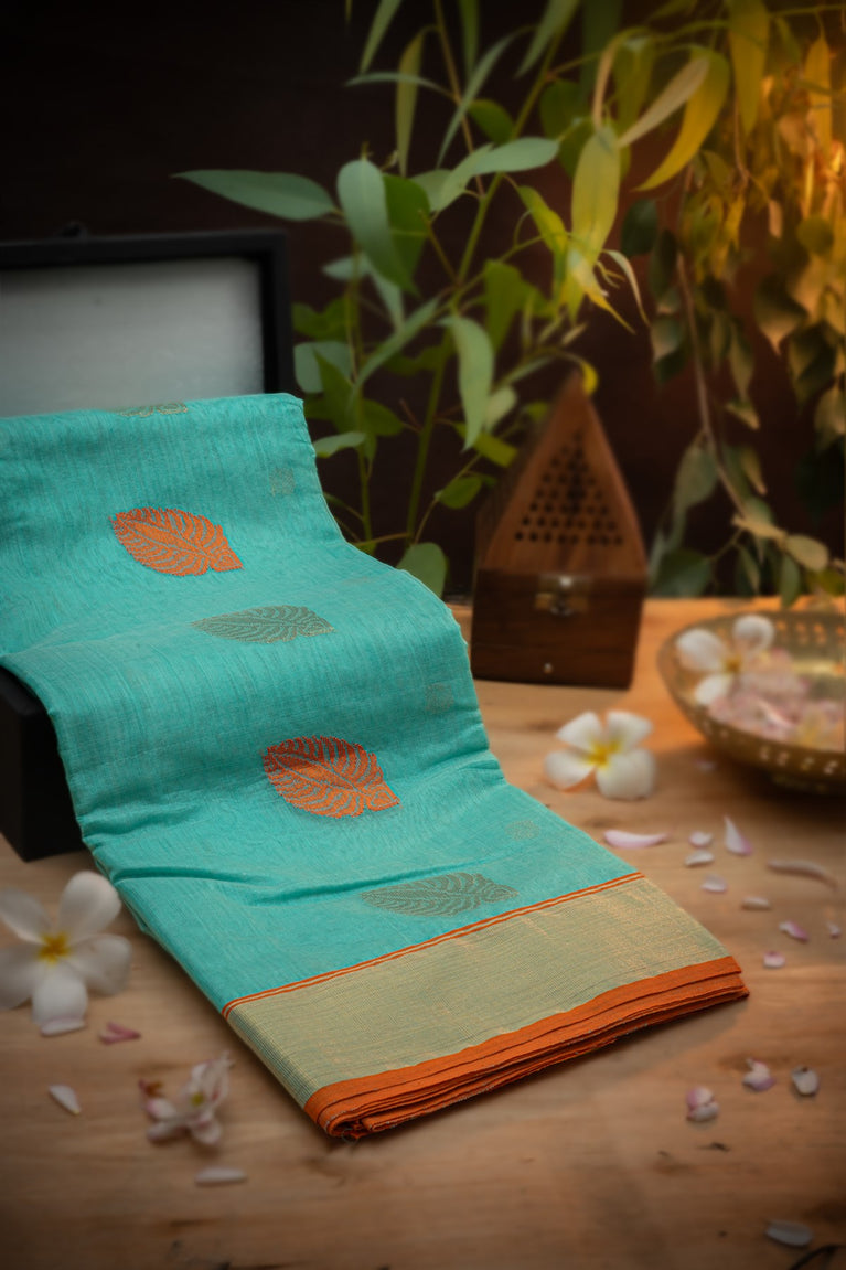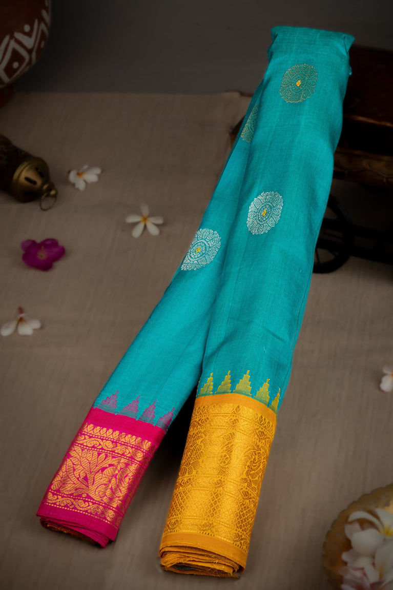 Varamahalakshmi Sea Blue & Mustard Zari Kota Buttis Saree