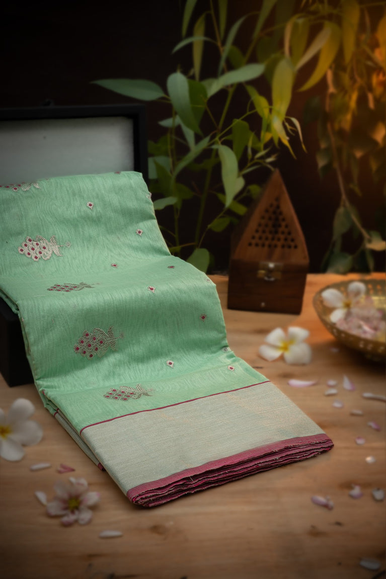 Varamahalakshmi Sea Green & Magenta Chanderi Motifs Saree