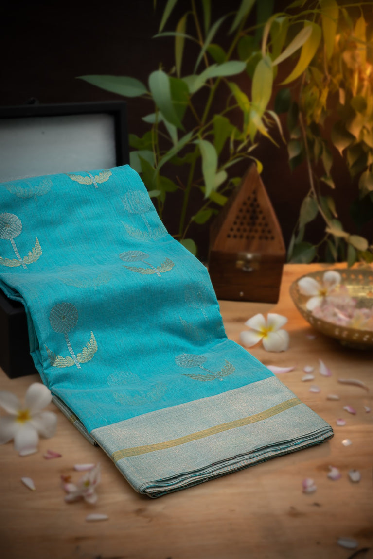 Varamahalakshmi Sea Blue & Silver Chanderi Motifs Saree