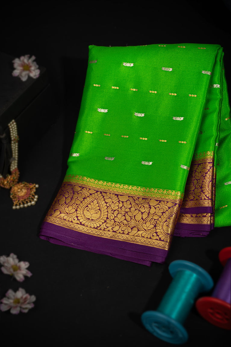Varamahalakshmi Dark Green & Purple Mysore Buttis Saree