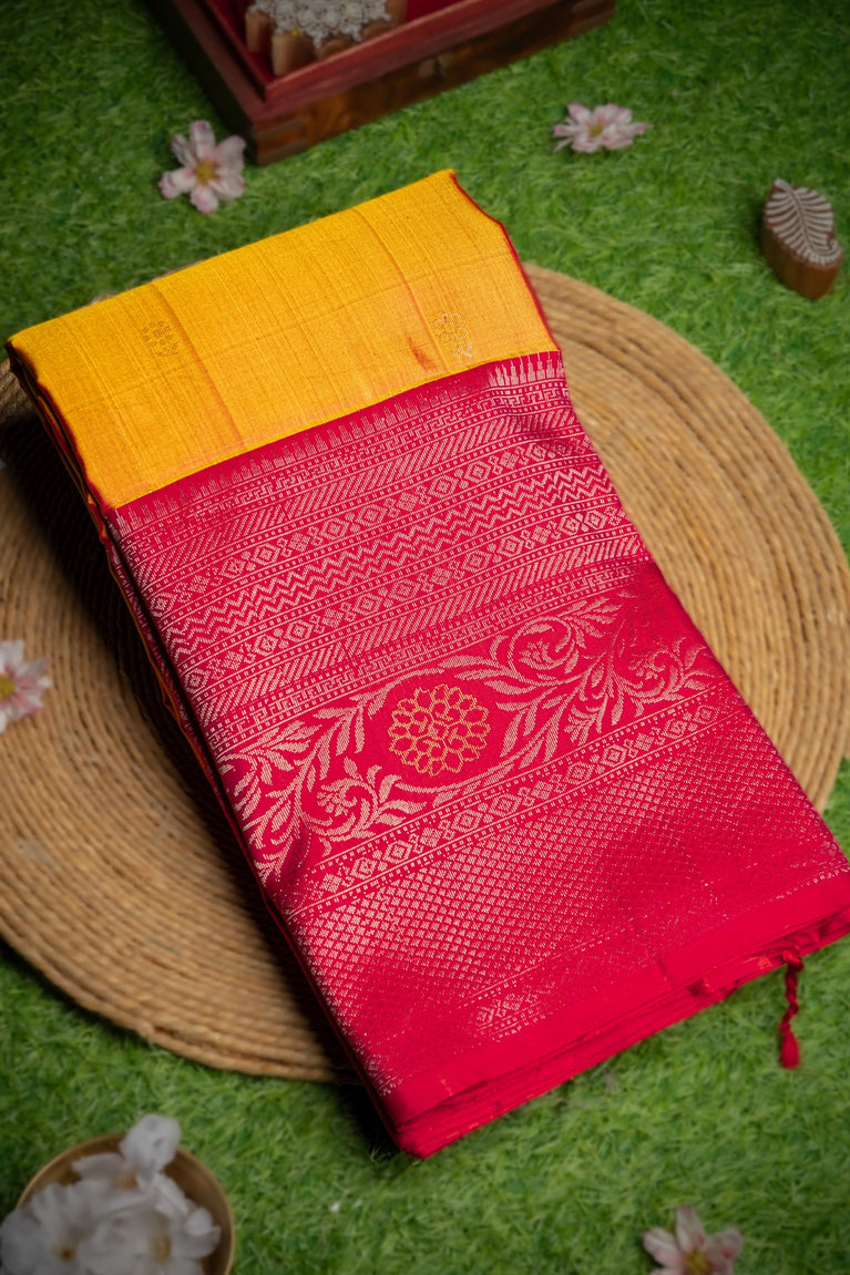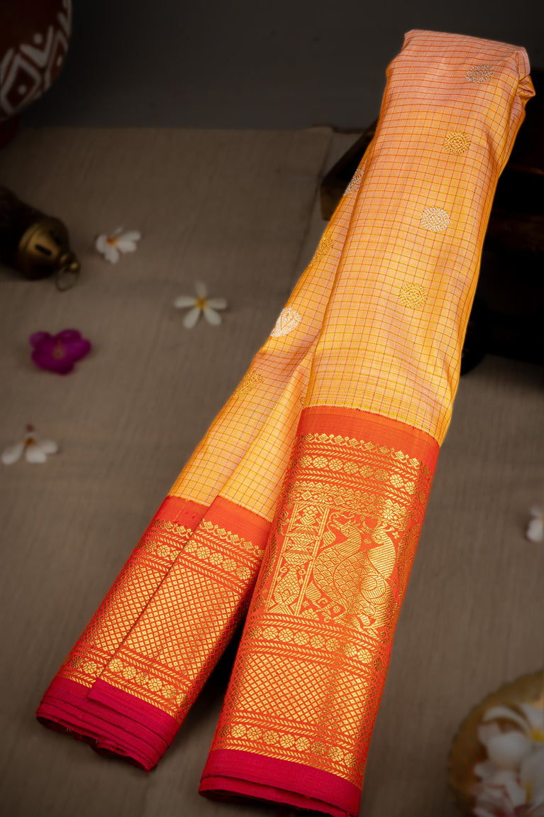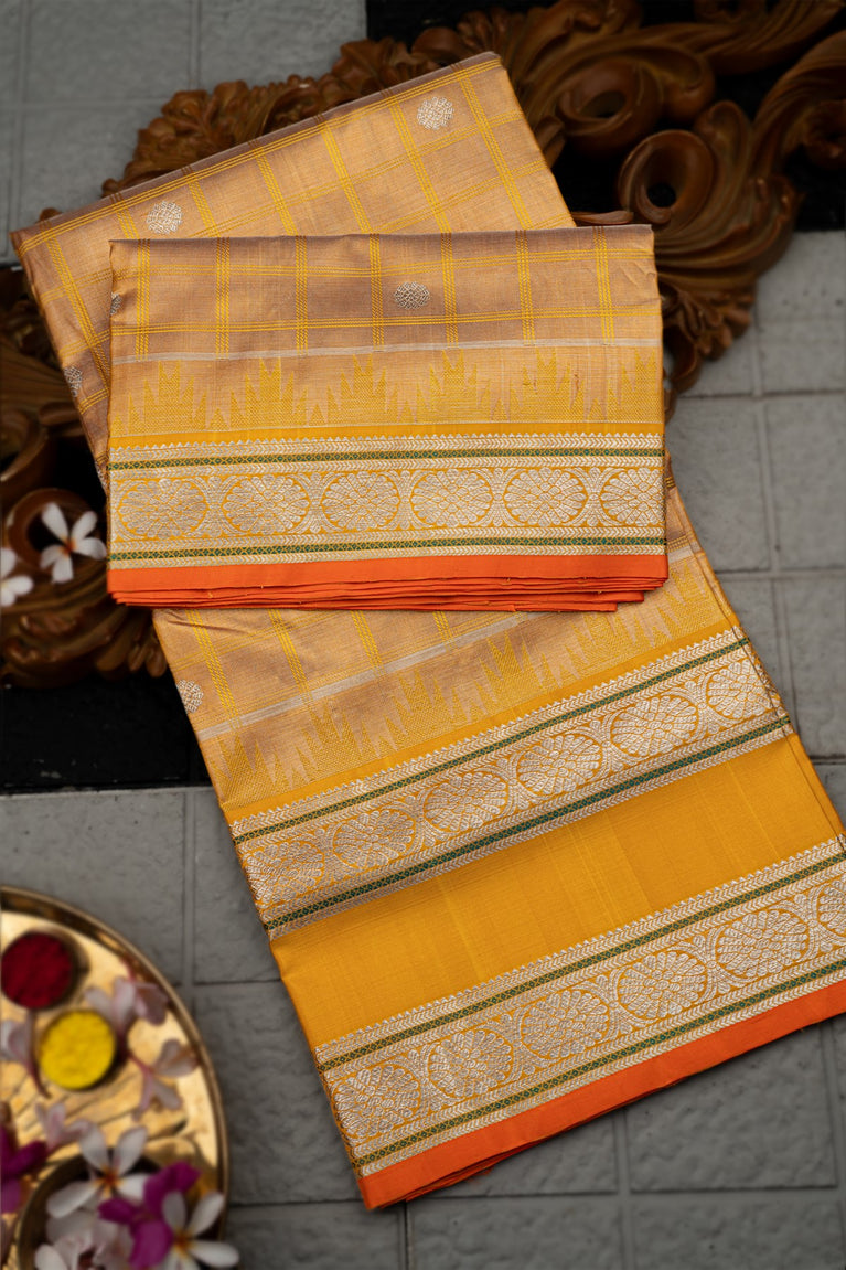 Varamahalakshmi Gold & Mustard Uppada Checks And Buttis Saree