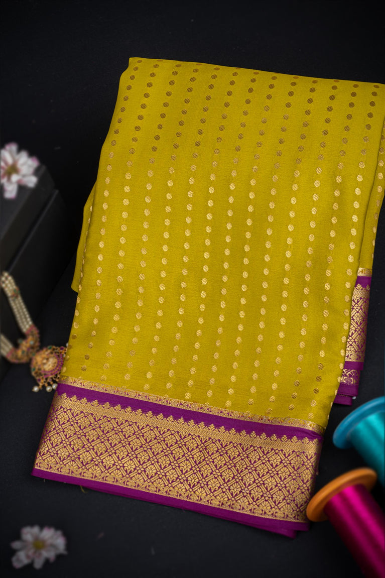 Varamahalakshmi Dark Mustard & Dark Purple Mysore Polka Dots Saree