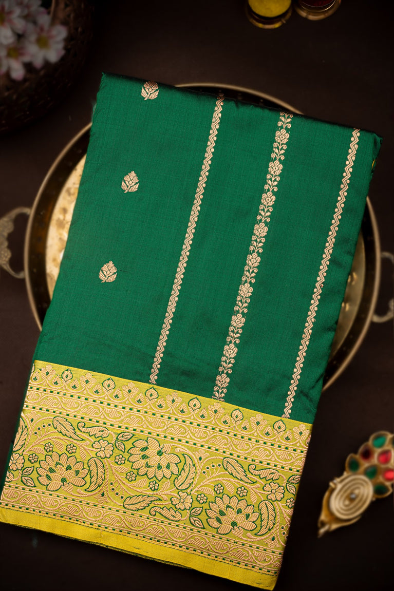 Varamahalakshmi Dark Green & Yellow Banarasi Buttis Saree