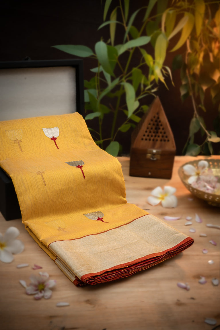 Varamahalakshmi Gold & Red Chanderi Motifs Saree