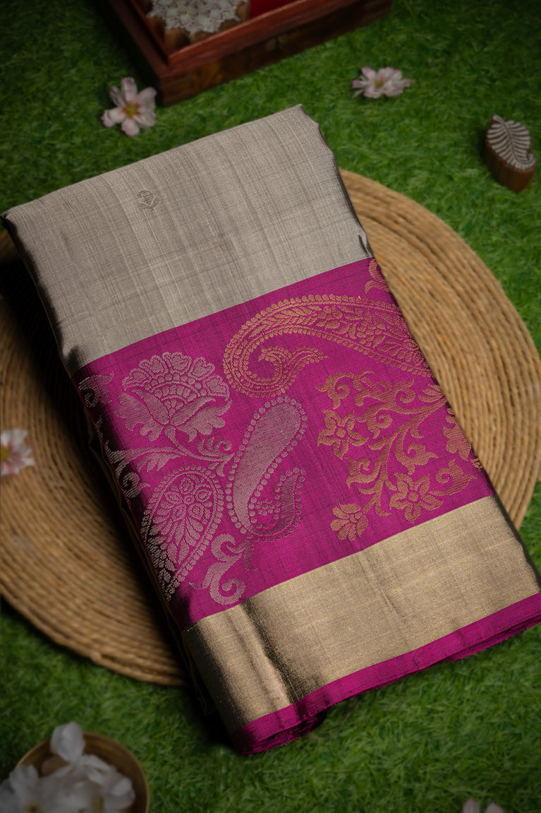 Varamahalakshmi Dark Grey & Pink Mysore Lines Saree