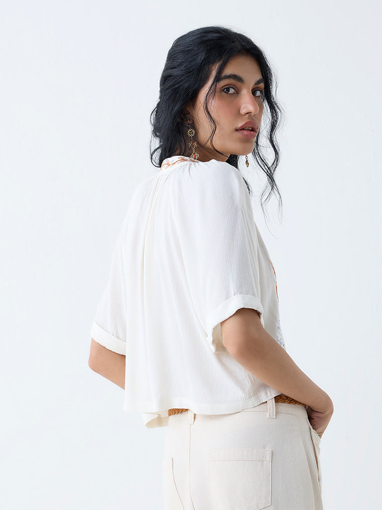 Bombay Paisley Off-White Floral Embroidered Cotton Top
