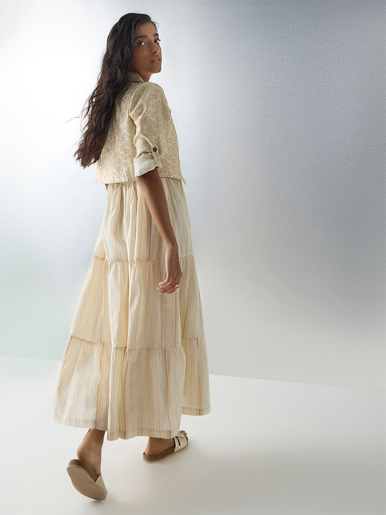 Bombay Paisley Off-White Striped Cotton Tiered Dress with Jacket
