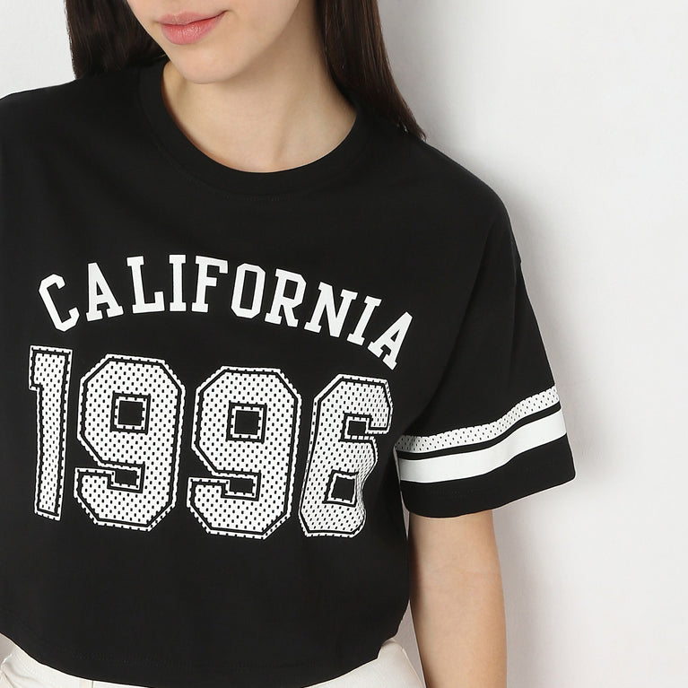Boxy Fit Graphic Short Sleeve Knit Crop T-Shirt