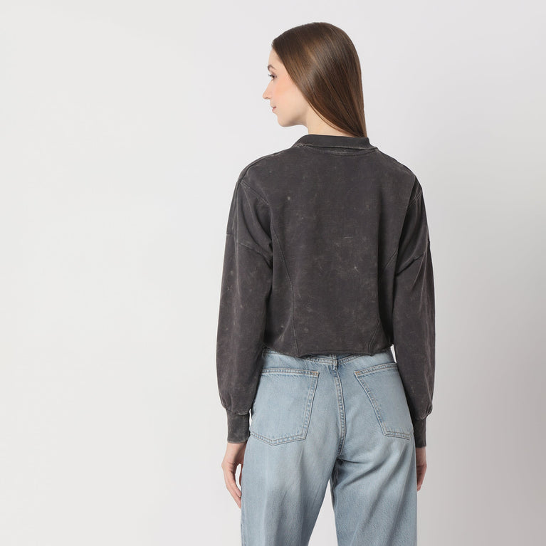 Boxy Fit Cropped Sweat Tee With Quarter Zipper Opening At Neck