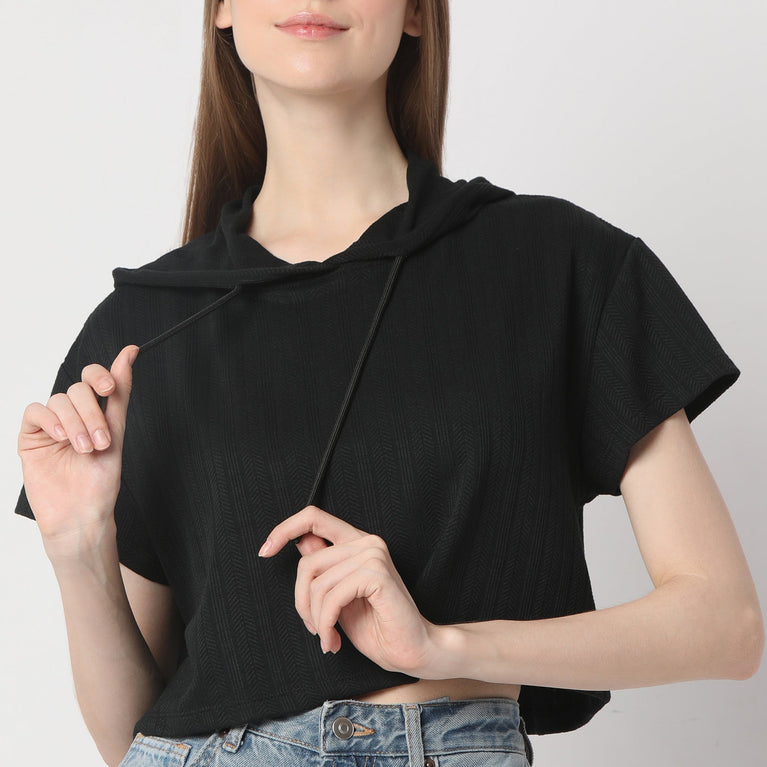 Boxy Fit Short Sleeve Hoodie Crop T-Shirt