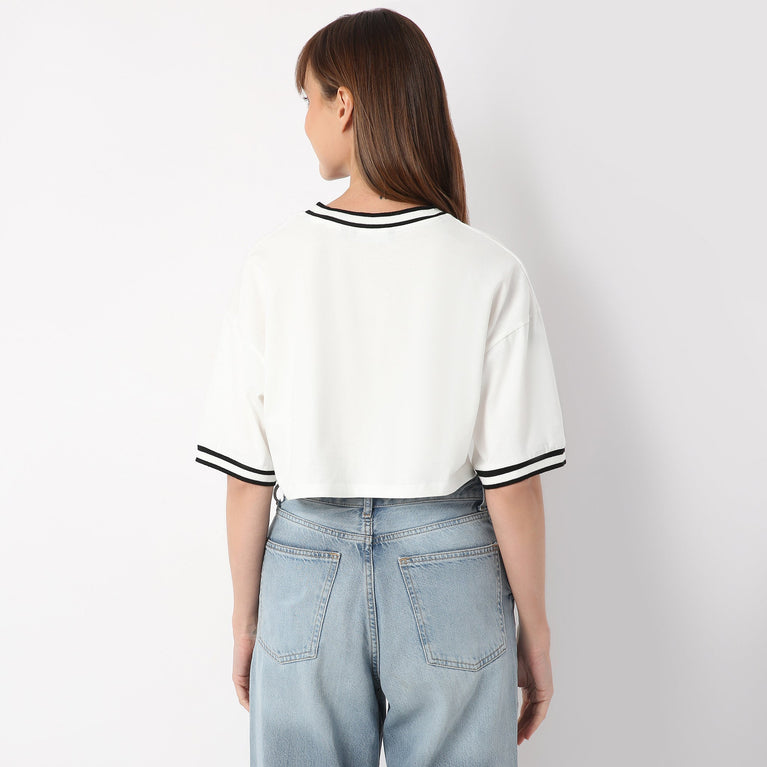 Boxy Fit Printed Short Sleeve Crop T-Shirt