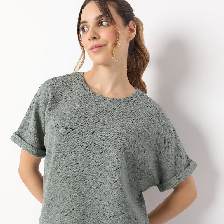 Boxy Fit Structured Flat Knits Dolman Sleeve Light Weight T-Shirt