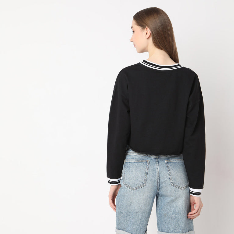 Boxy Fit Round Neck Full Sleeve With V-Neck Sweat Tee