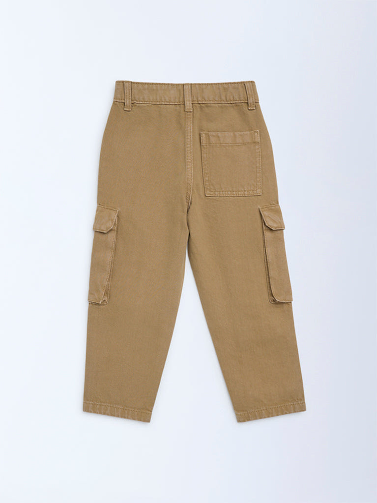 HOP Kids Boys Brown Cargo-Style Mid-Rise Jeans